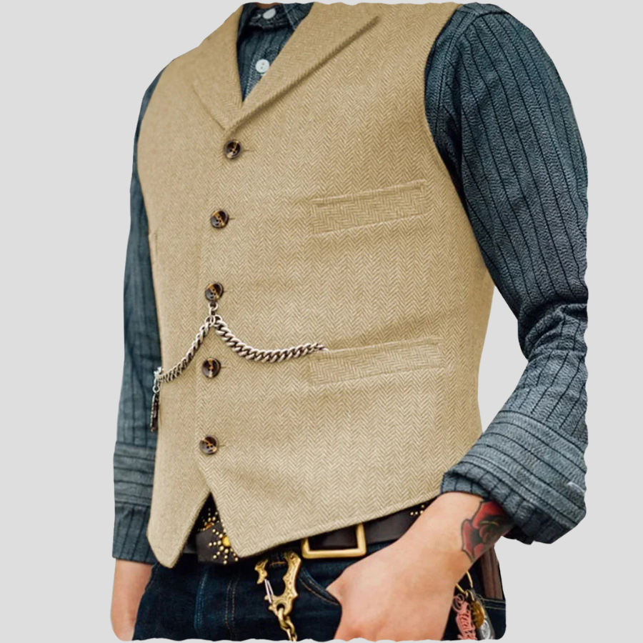 Beżowa Kamizelka Steampunk z Łańcuchem Kieszonkowym Jodełka