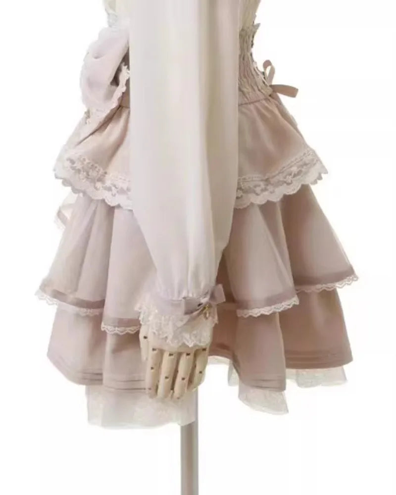 Beżowa Spódnica Jirai Kei z Kokardą i Koronkowym Wykończeniem Zobacz opcje