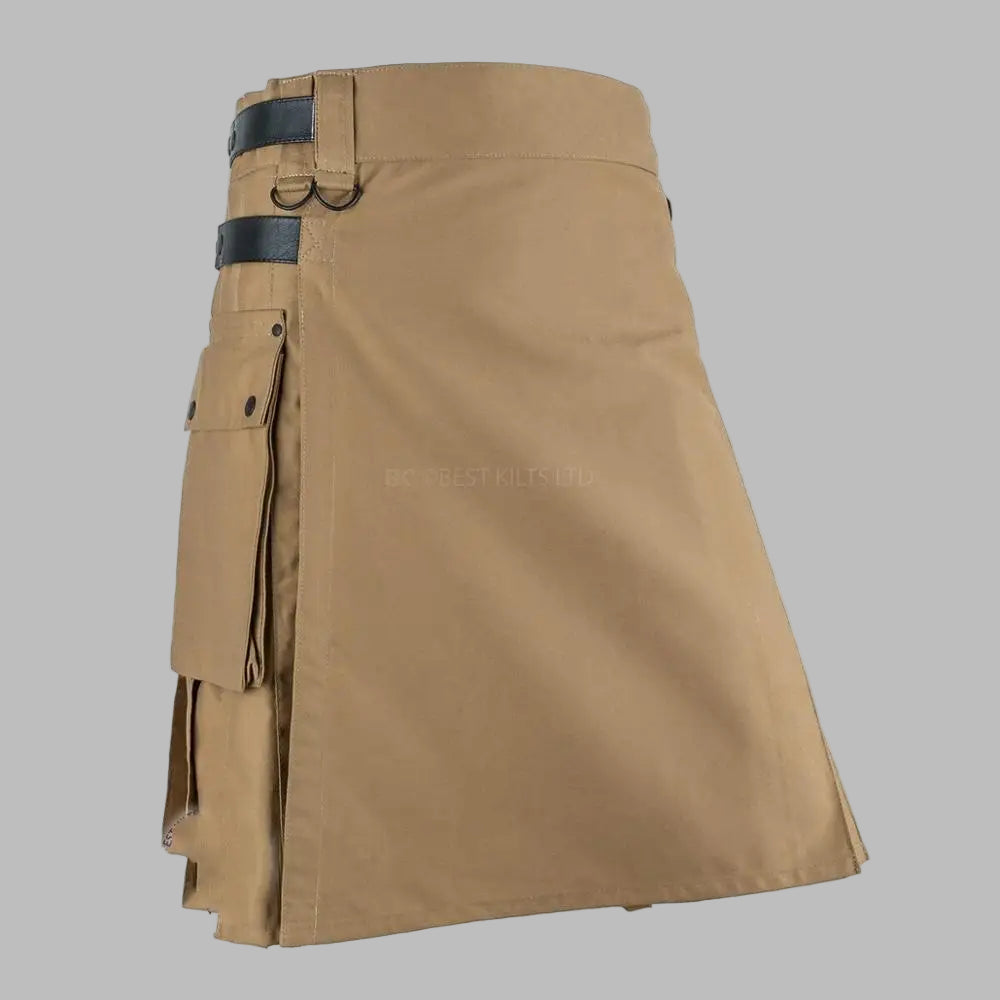 Beżowy Kilt Steampunk z Skórzanymi Paskami i Sprzączkami Zobacz opcje