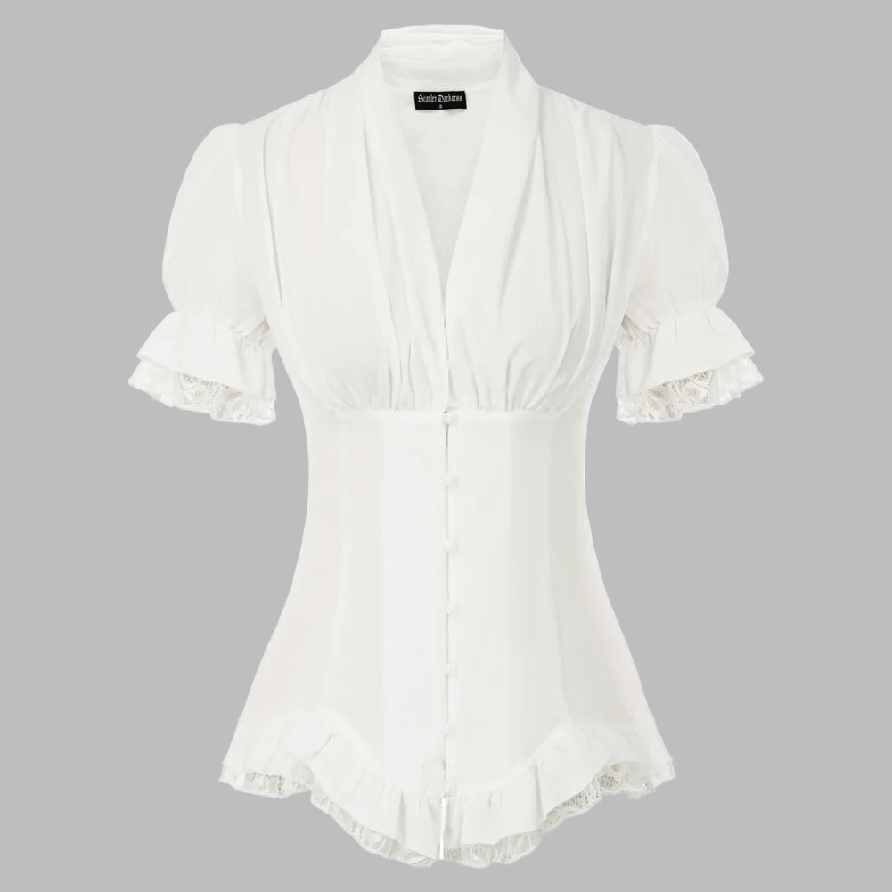 Biała Bluzka Steampunk z Koronką i Krótkim Rękawem Zobacz opcje