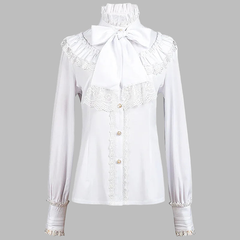 Biała Bluzka Steampunk z Koronkową Aplikacją i Kokardą