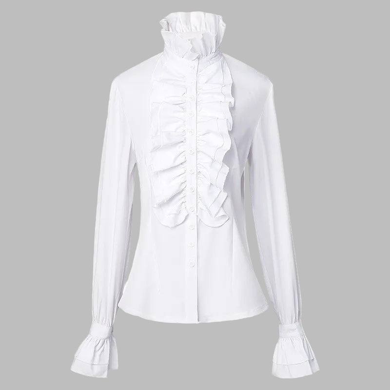 Biała Bluzka Steampunk z Żabotem i Bufiastymi Rękawami Zobacz opcje