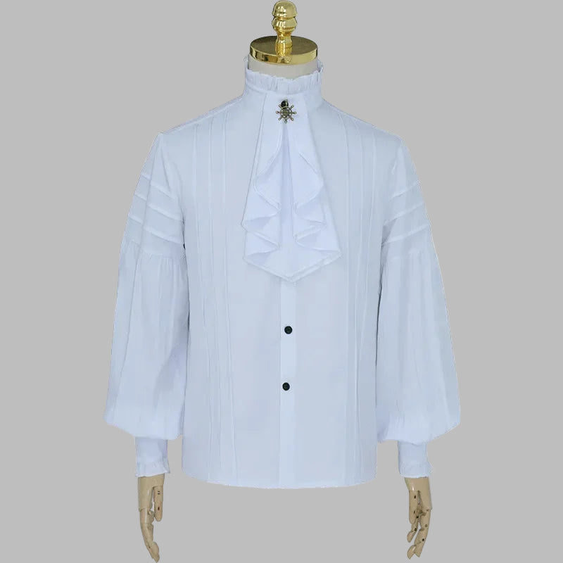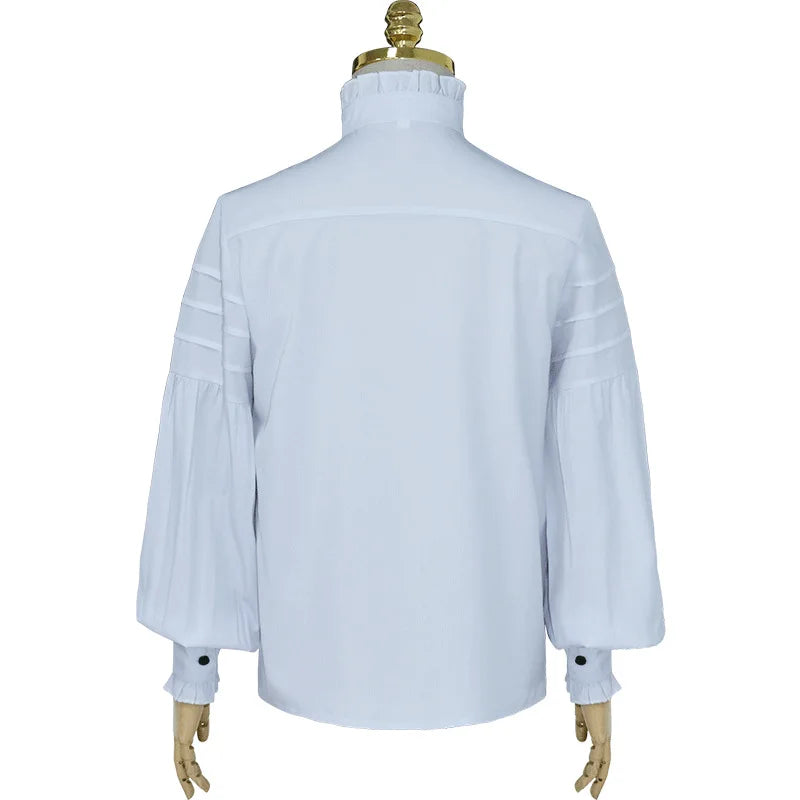 Biała Koszula Steampunk z Wysokim Kołnierzykiem i Żabotem Zobacz opcje