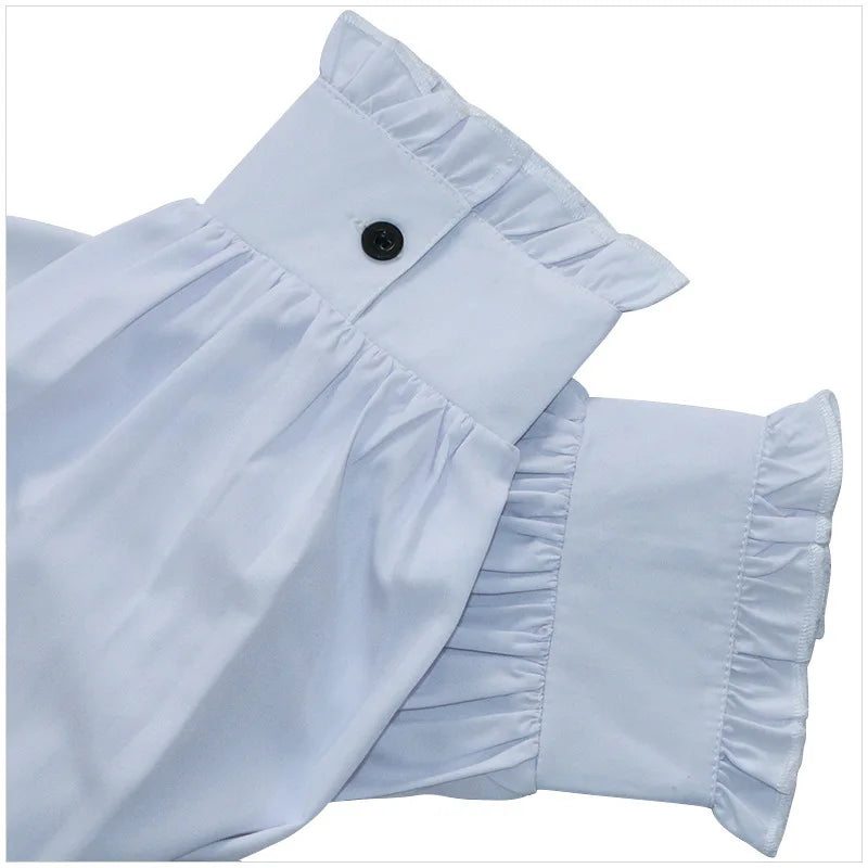Biała Koszula Steampunk z Wysokim Kołnierzykiem i Żabotem