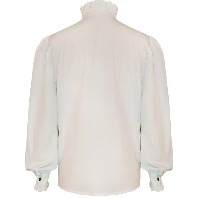 Biała Koszula Steampunk z Wysokim Kołnierzykiem Punk