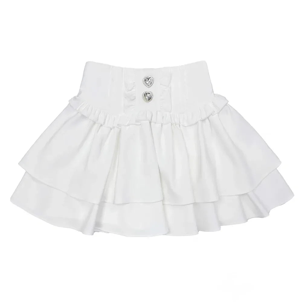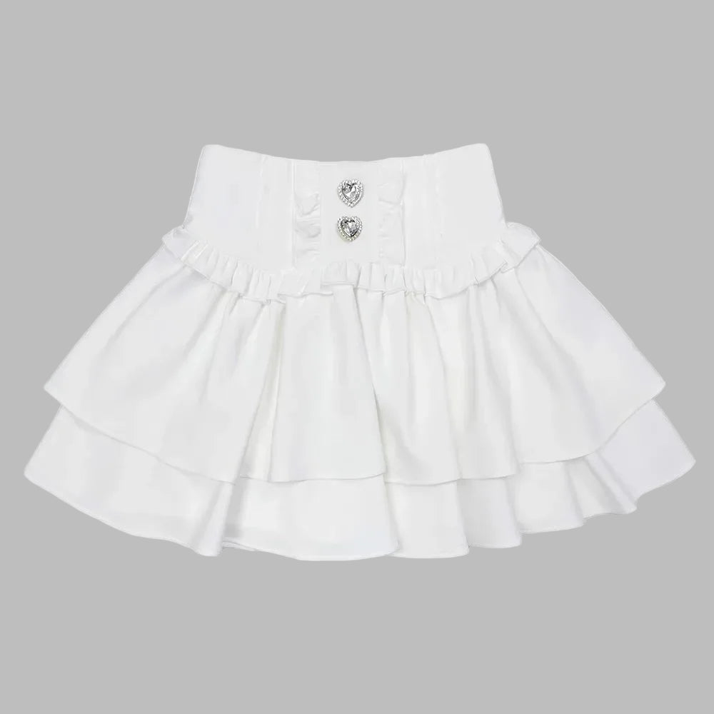 Biała Spódnica Jirai Kei z Falbanami i Guzikami w Serca Zobacz opcje