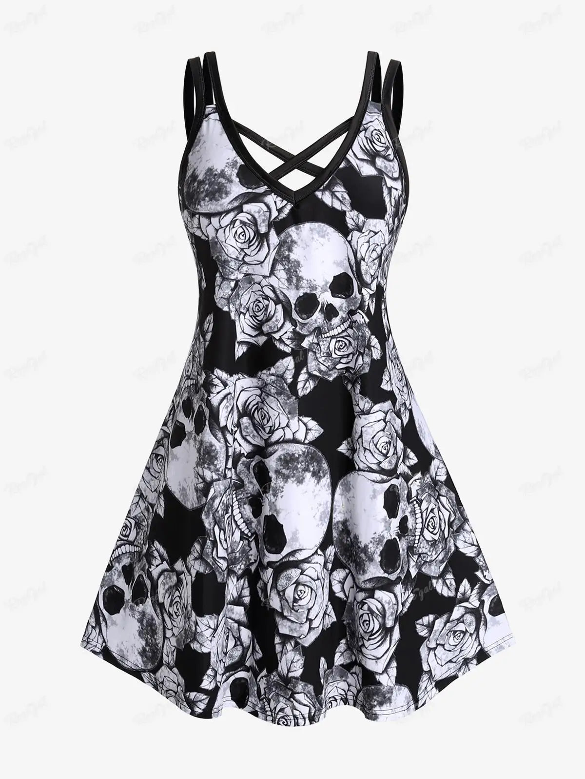 Biała Sukienka Rock z Czaszkami i Różami Metal 5XL