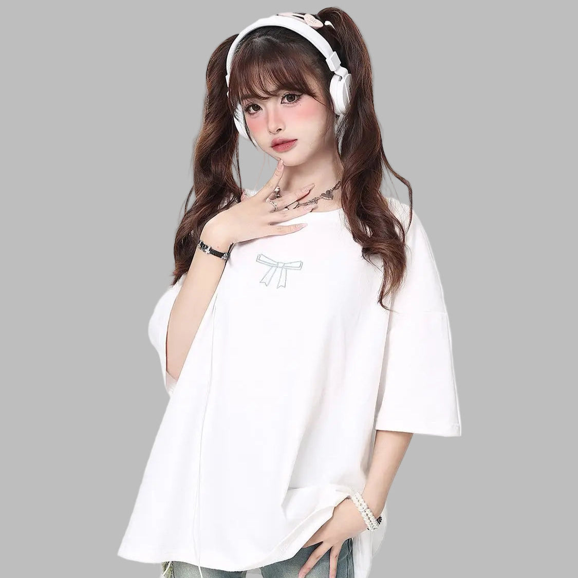 Bluza Rock ze Sznurowaniem na Plecach i Niebieską Kokardą Biała Zobacz opcje