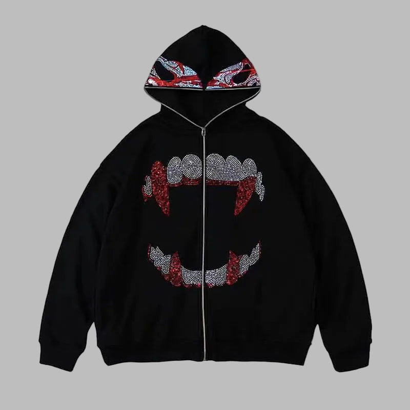 Bluza Zip Czarna Gotycka Damska z Kłami Wampira