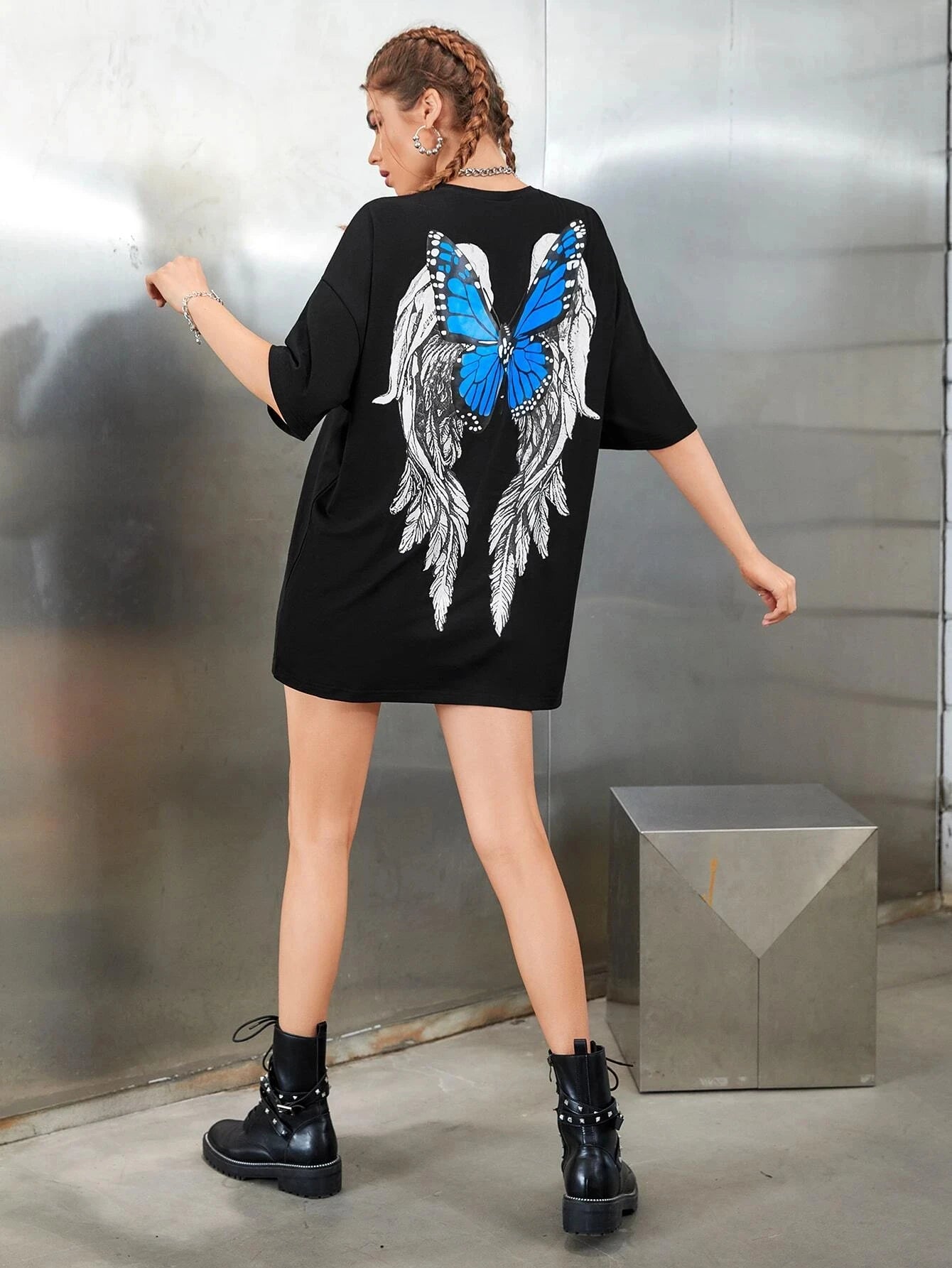 Bluzka Gothic Rock Skrzydła Motyl Niebieski Oversize Damska Zobacz opcje