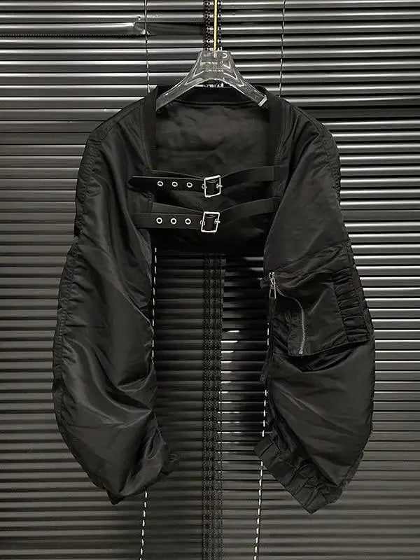 Bolero Cyber Gothic Punk Czarna Krótka Pasy Sprzączki Industrial Unisex