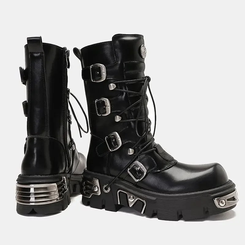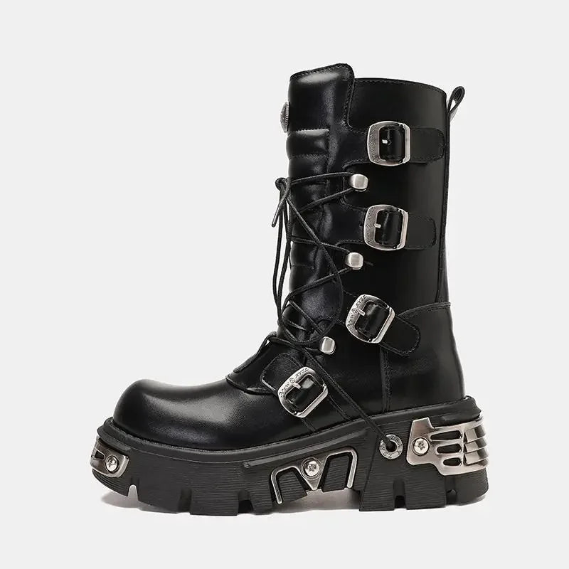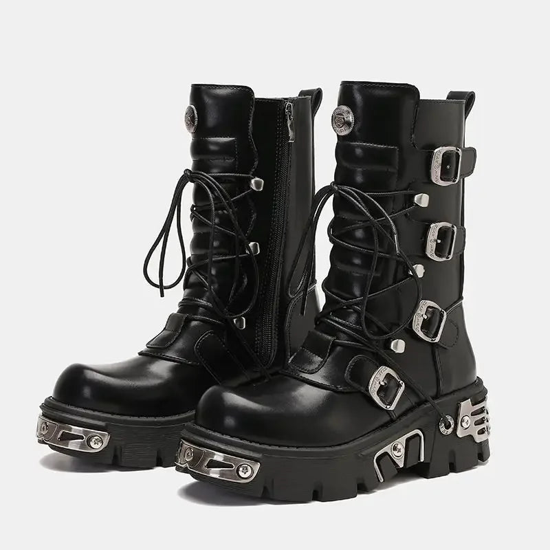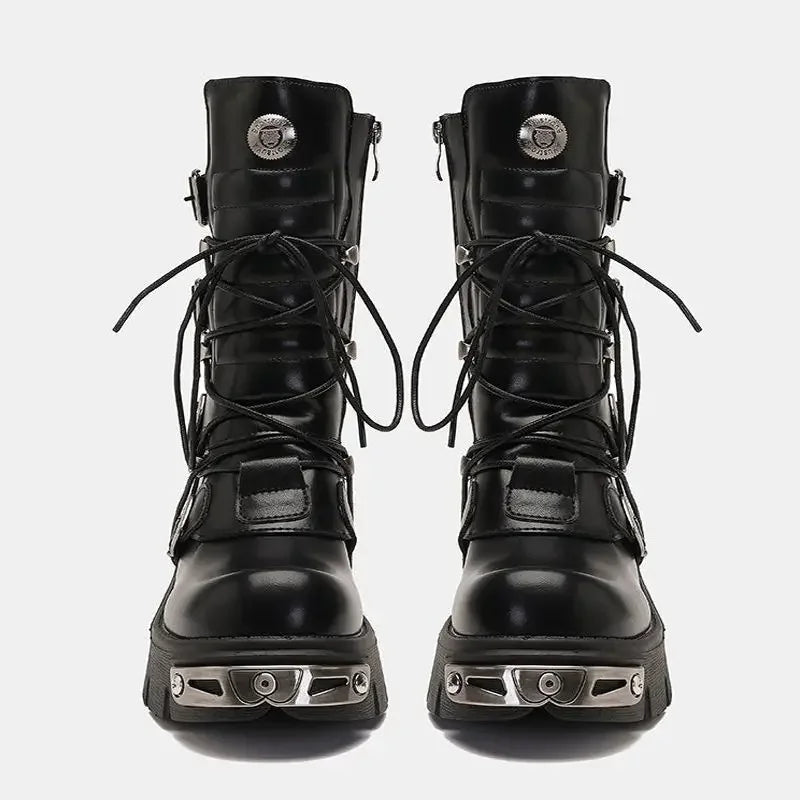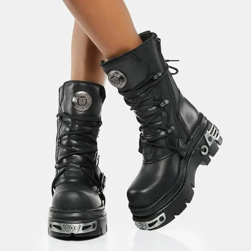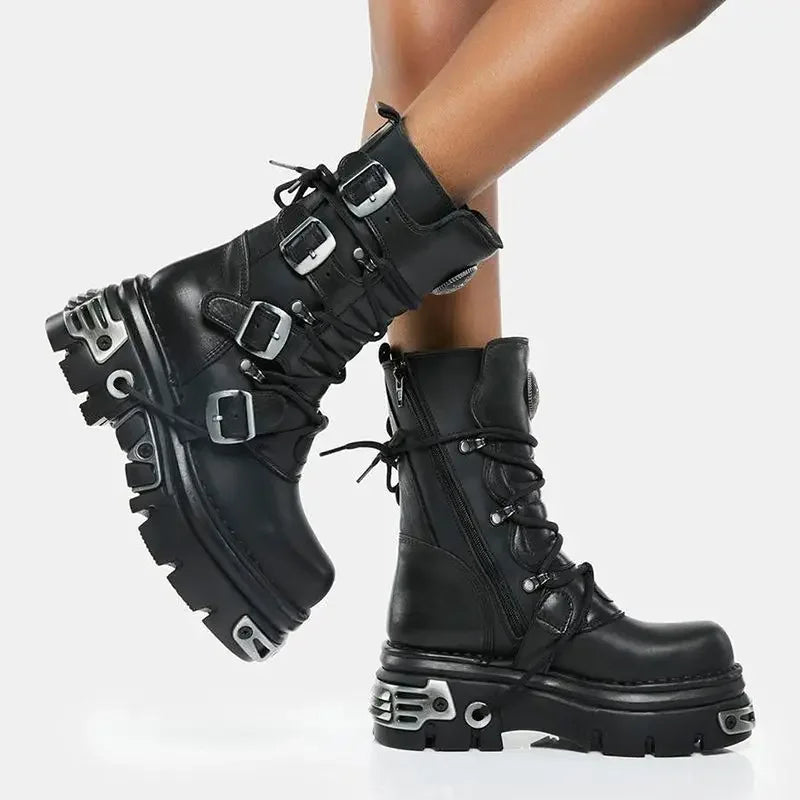 - Styl: botki do połowy łydki w stylu motocyklowym