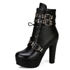 Wysokie Czarne Botki na Obcasie z Klamrami – Styl Cyberpunk