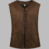 Brązowa Kamizelka Steampunk ze Sznurowaniem Bez Rękawów Zamszowa