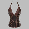 Brązowy Gorset Steampunk z Łańcuchami i Skórzanymi Paskami