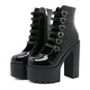 Buty Gotyckie Damskie Platformy Czarne Lakierowane Metal