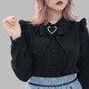 Czarna Bluzka Gotycka z Koronkowym Kołnierzem i Sercem Jirai Kei