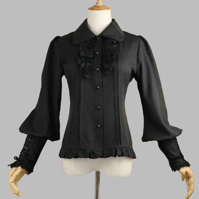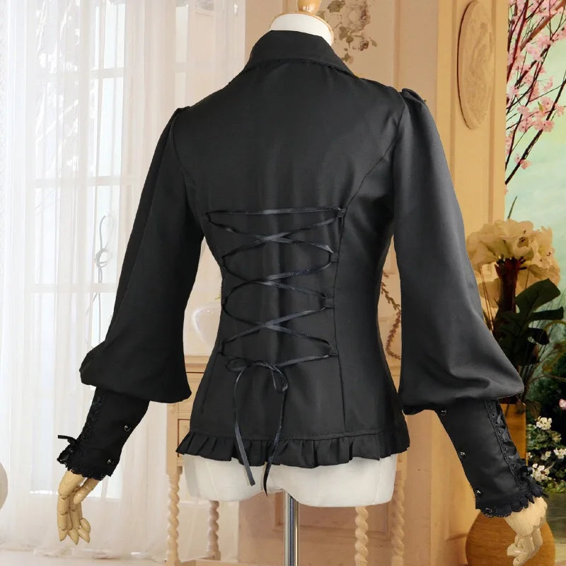 Czarna Bluzka Metal z Falbanami i Sznurowaniem Rękawów XXL
