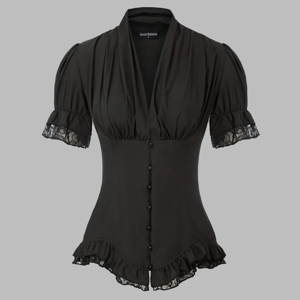 Czarna Bluzka Metal z Koronką i Krótkim Rękawem