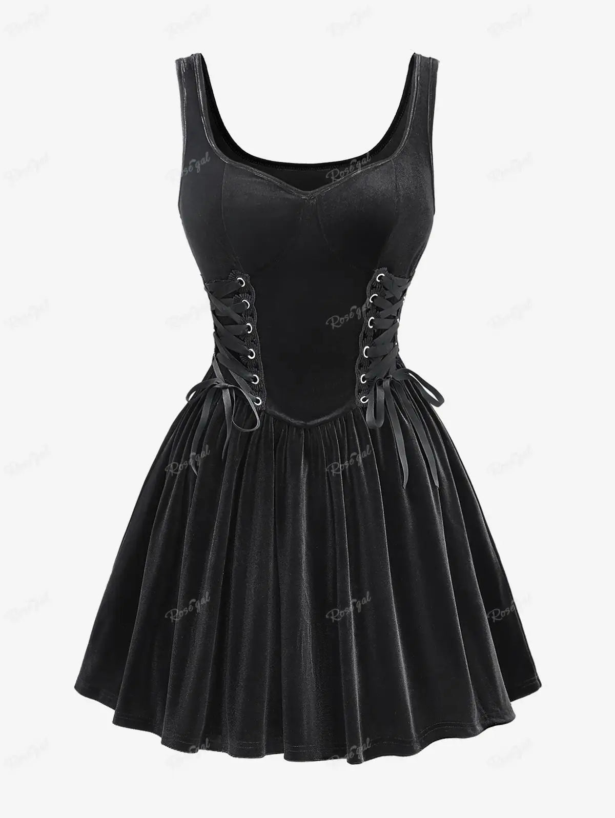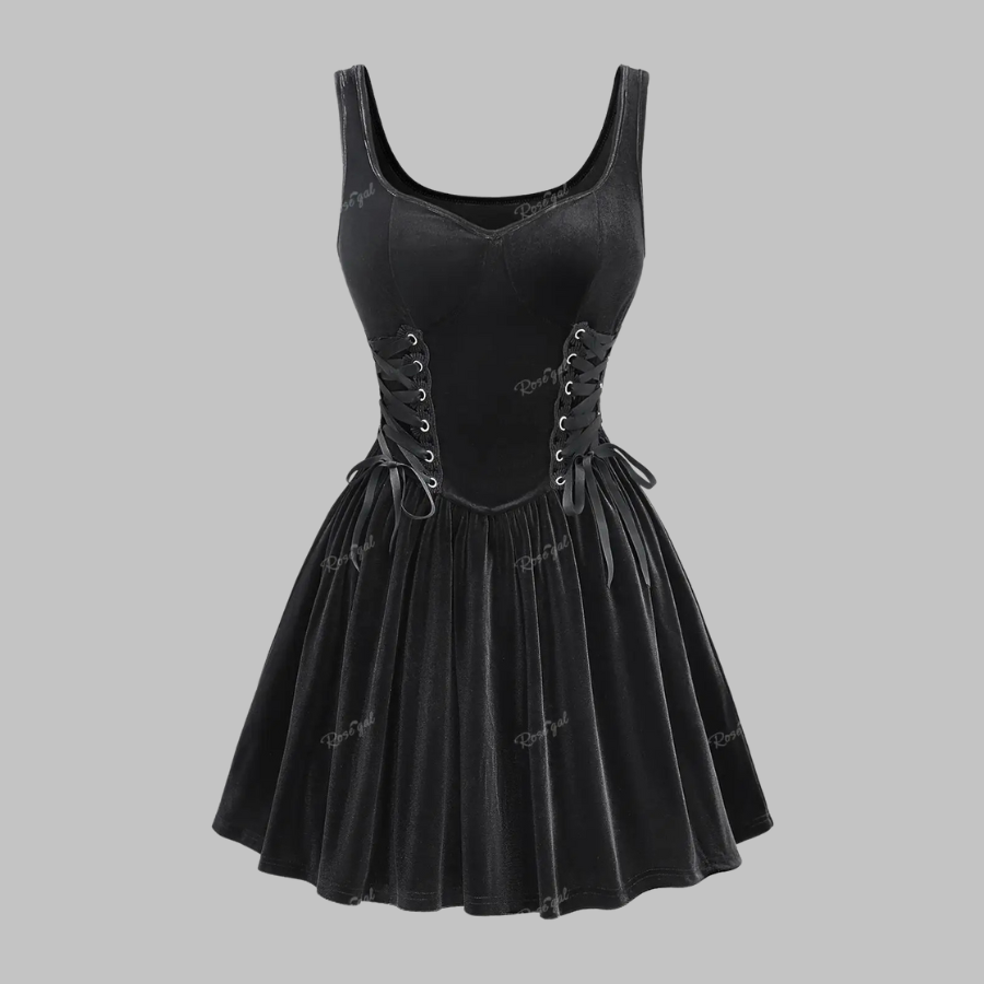 Czarna gotycka sukienka plus size z gorsetem i rozkloszowaną spódnicą