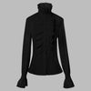 Czarna Koszula Goth Rock z Wysokim Kołnierzem i Żabotami