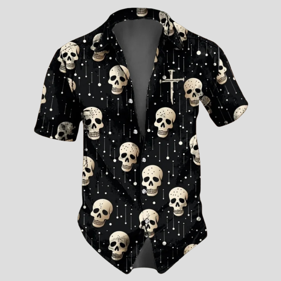 Czarna Koszula Punk z Czaszkami i Krzyżami Krótki Rękaw Zobacz opcje