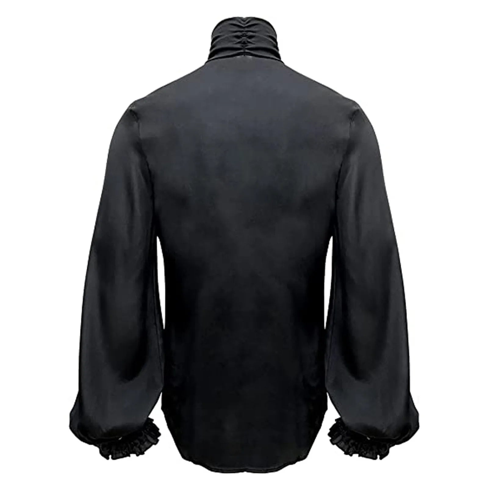 Czarna Koszula Steampunk z Koronkowymi Falbanami i Wysokim Kołnierzykiem XXL