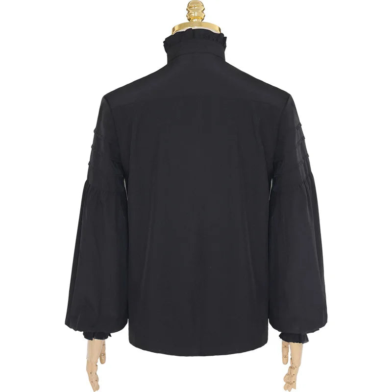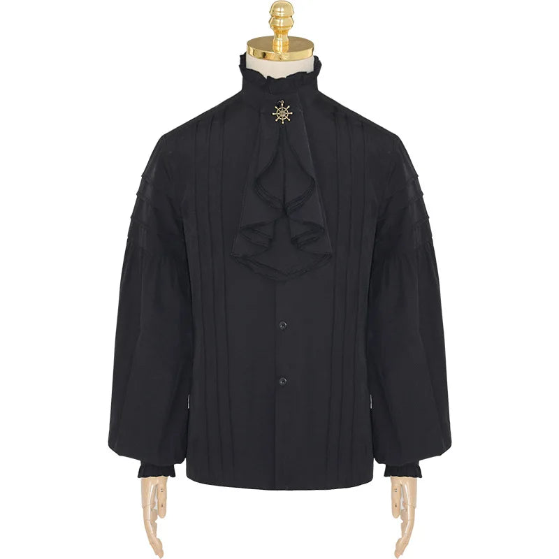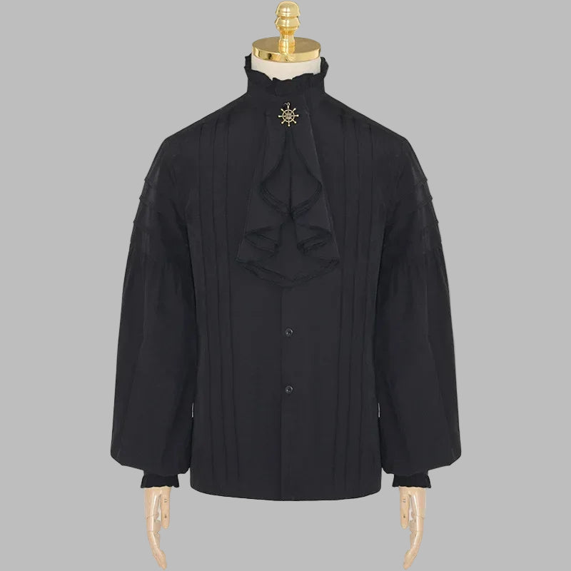 Czarna Koszula Steampunk z Żabotem i Złotą Broszką Zobacz opcje