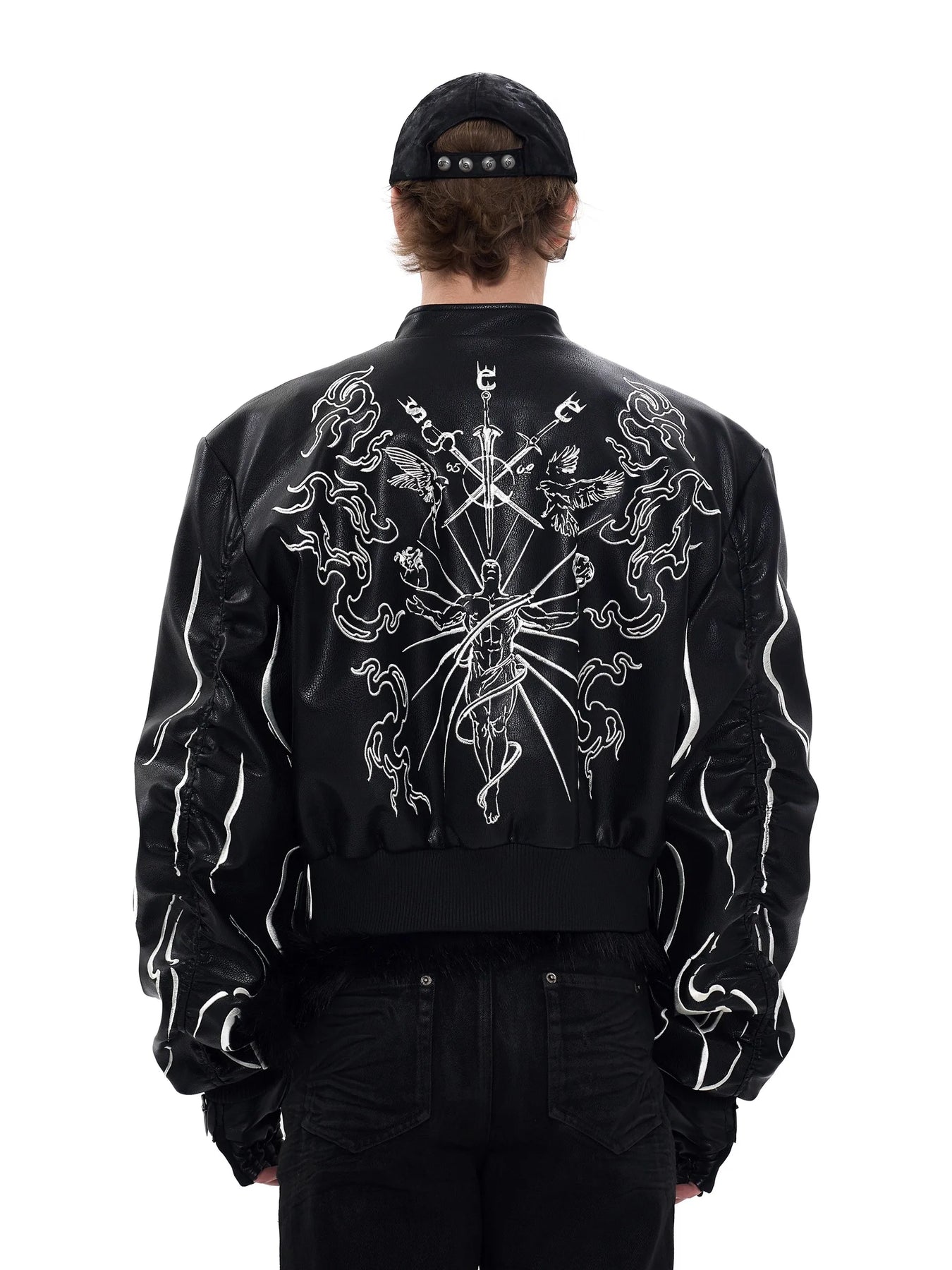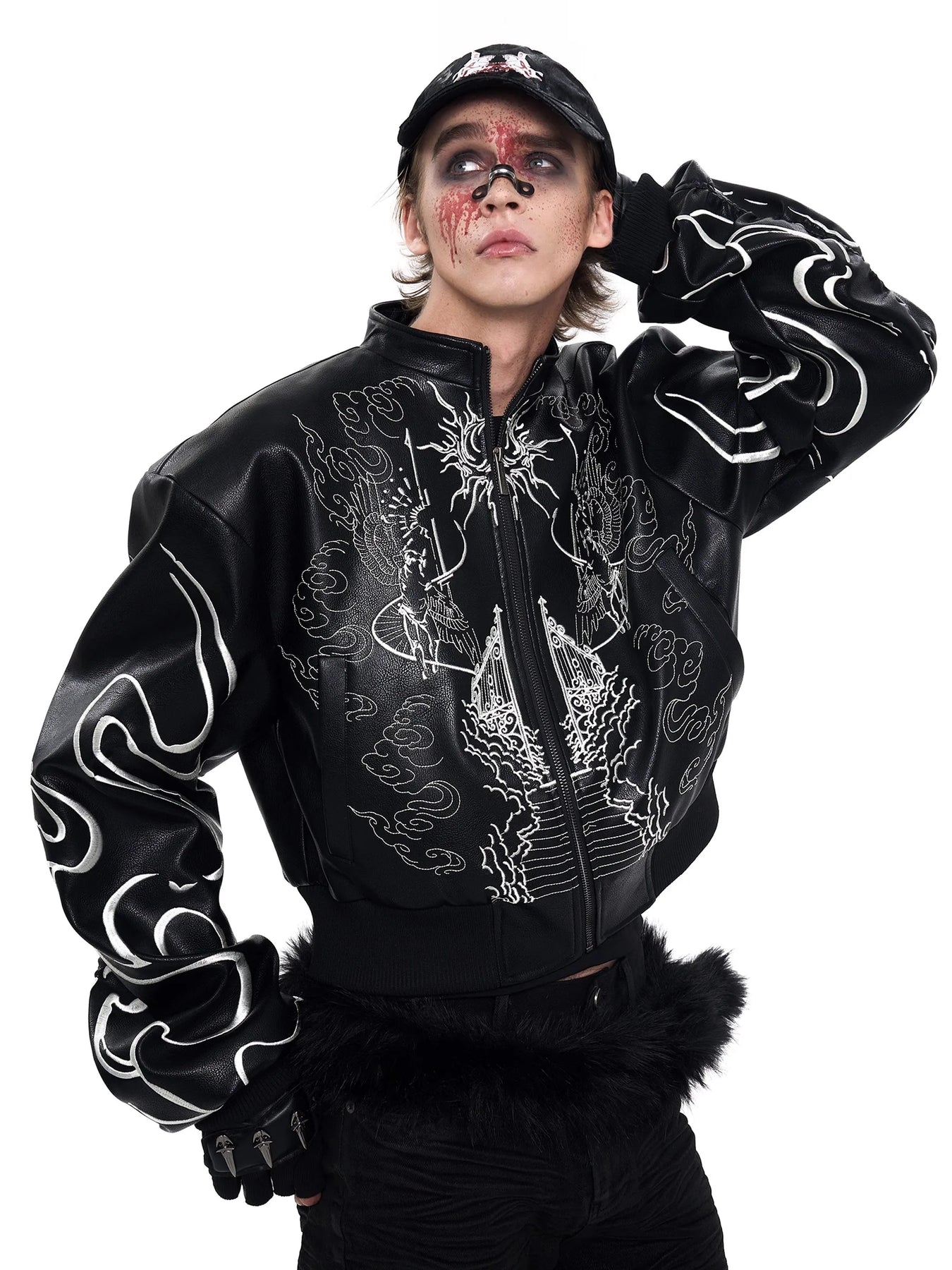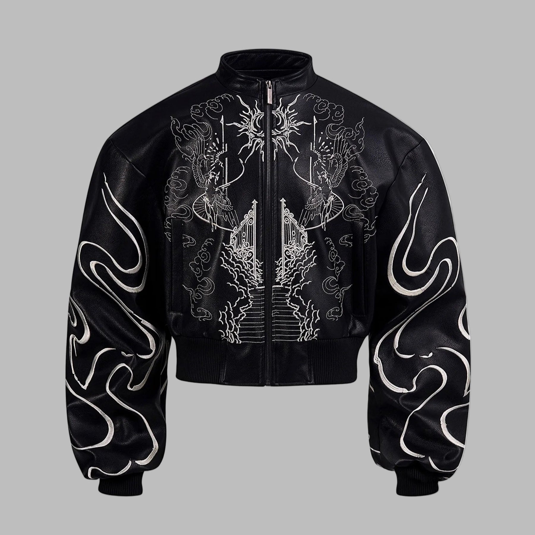 Czarna Kurtka Goth Metal Bomber z Haftem Aniołów i Nieba Zobacz opcje