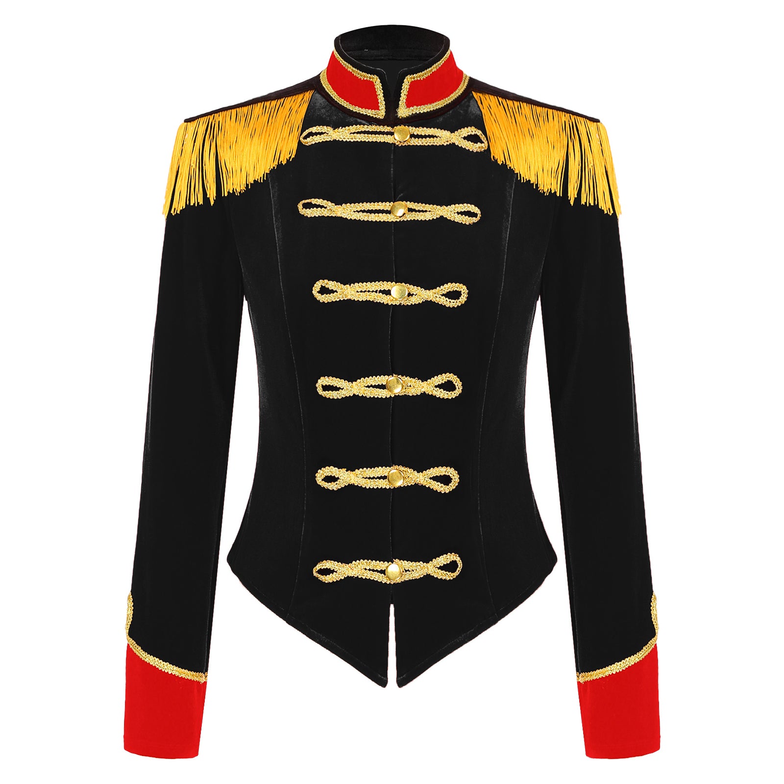 Czarna Kurtka Steampunk Militarna z Złotymi Detalami i Frędzlami Zobacz opcje