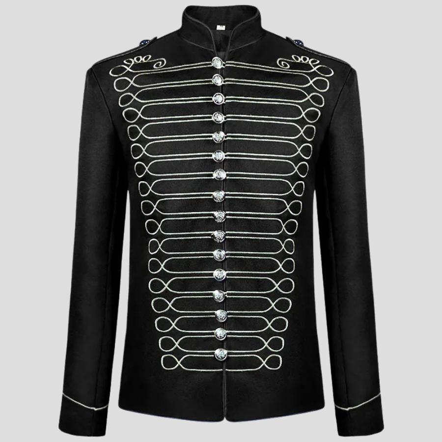Czarna Kurtka Steampunk z Białymi Ozdobnymi Sznurami Męska Zobacz opcje
