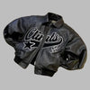 Czarna Skórzana Kurtka Punk Metal z Białymi Prinami Oversize