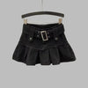 Czarna Spódniczka Punk z Paskiem i Plisami Metal