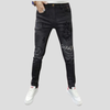Czarne Jeansy Skinny Metal z Dziurami i Napisami Vintage