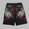 Czarne Spodenki Grunge Metal ze Skrzydłami i Bordowymi Wzorami