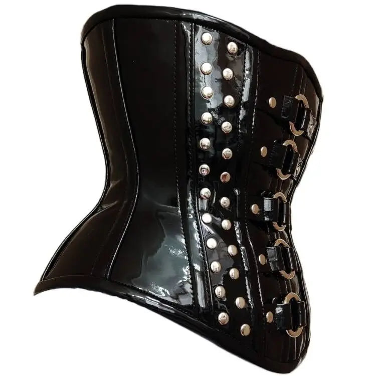 Czarny Gorset Gotycki Punk z Metalowymi Klamrami i Ćwiekami 4XL