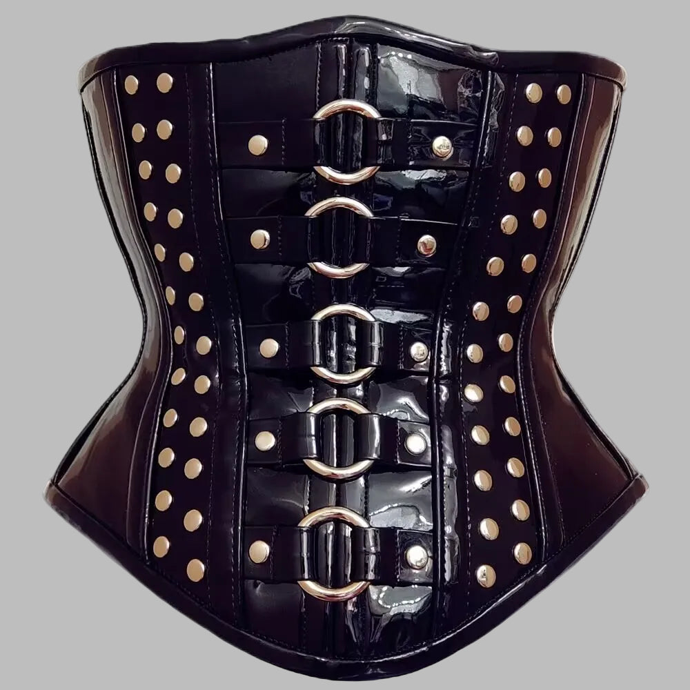 Czarny Gorset Gotycki Punk z Metalowymi Klamrami i Ćwiekami
