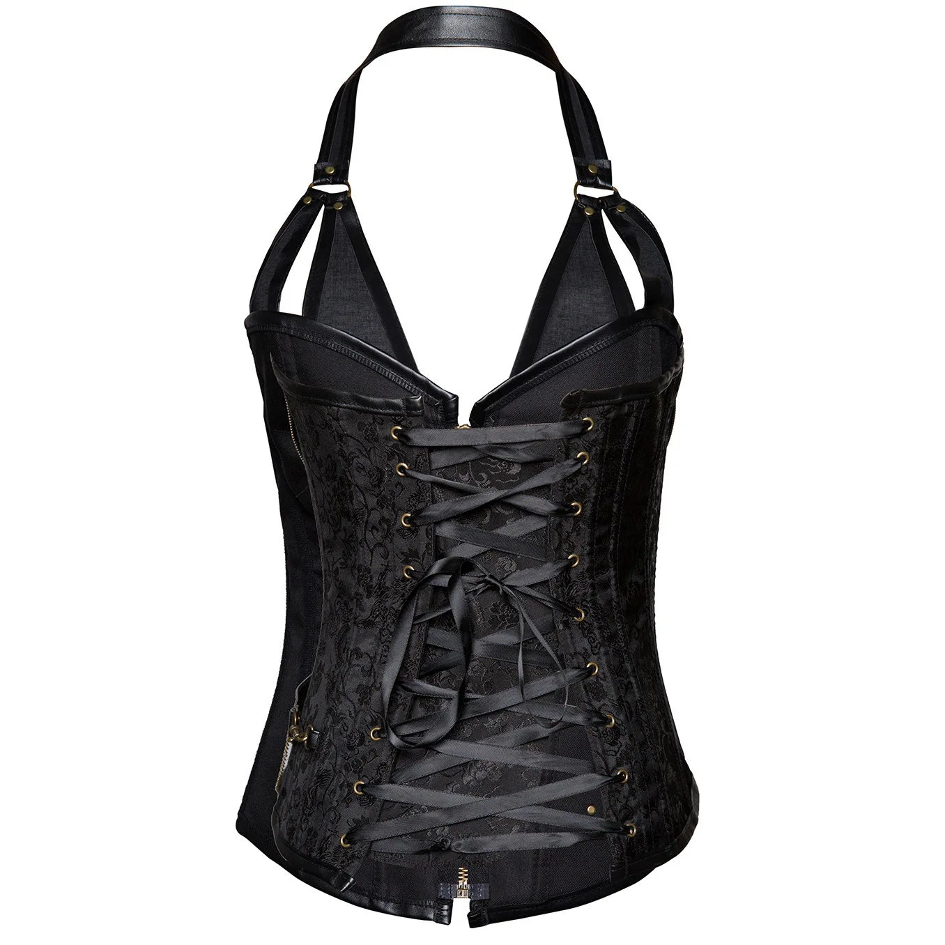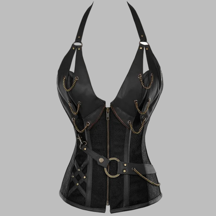 Czarny Gotycki Gorset Punk z Łańcuchami i Skórzanymi Detalami