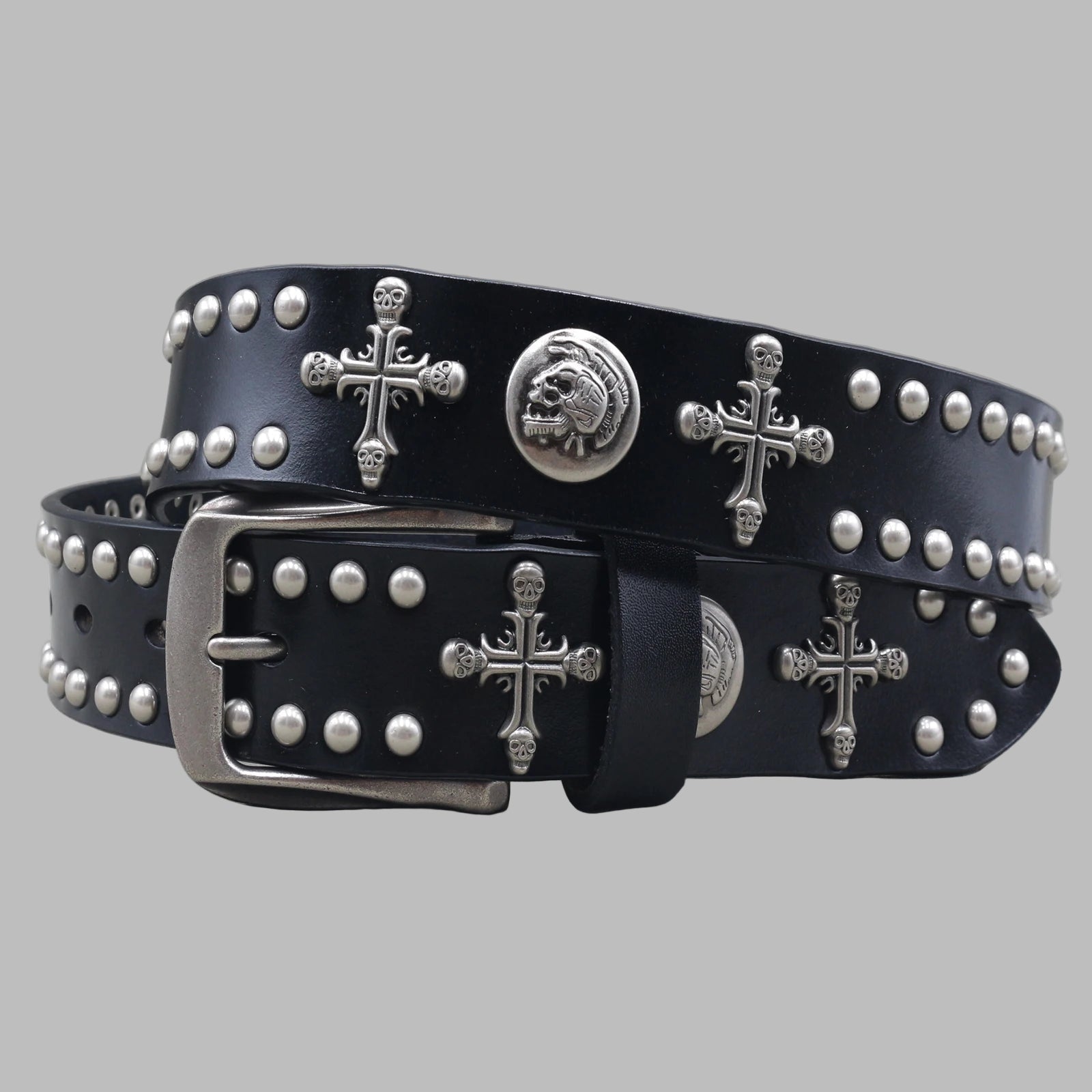 Czarny Pasek z Krzyżami i Ćwiekami Metal Rock