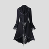Czarny Płaszcz Metal Goth z Koronkowymi Rękawami i Sznurowaniem