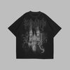 Czarny T-shirt Metal z Nadrukiem Katedry i Ornamentami