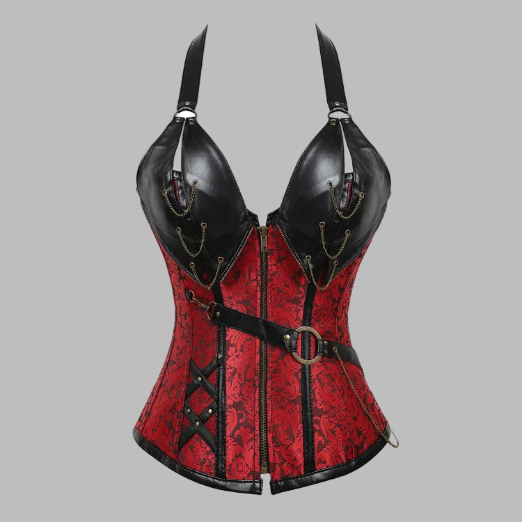 Czerwony Gorset Punk z Czarnymi Skórzanymi Elementami
