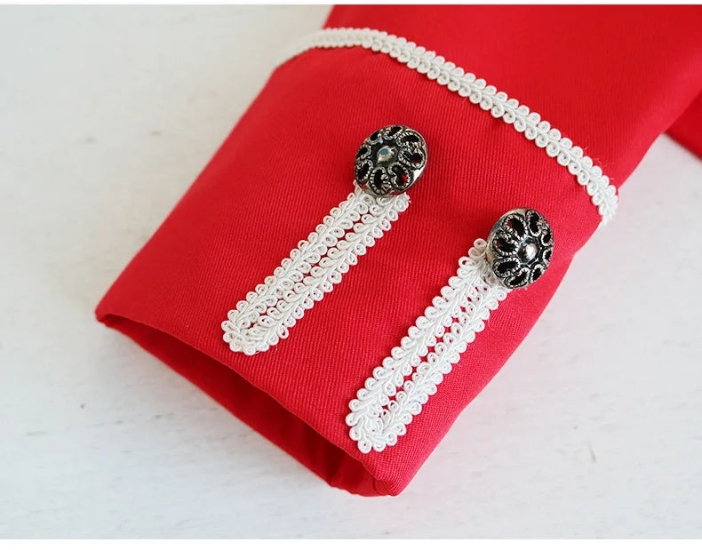 Czerwony Płaszcz Steampunk z Białymi Ozdobnymi Sznurami Męski