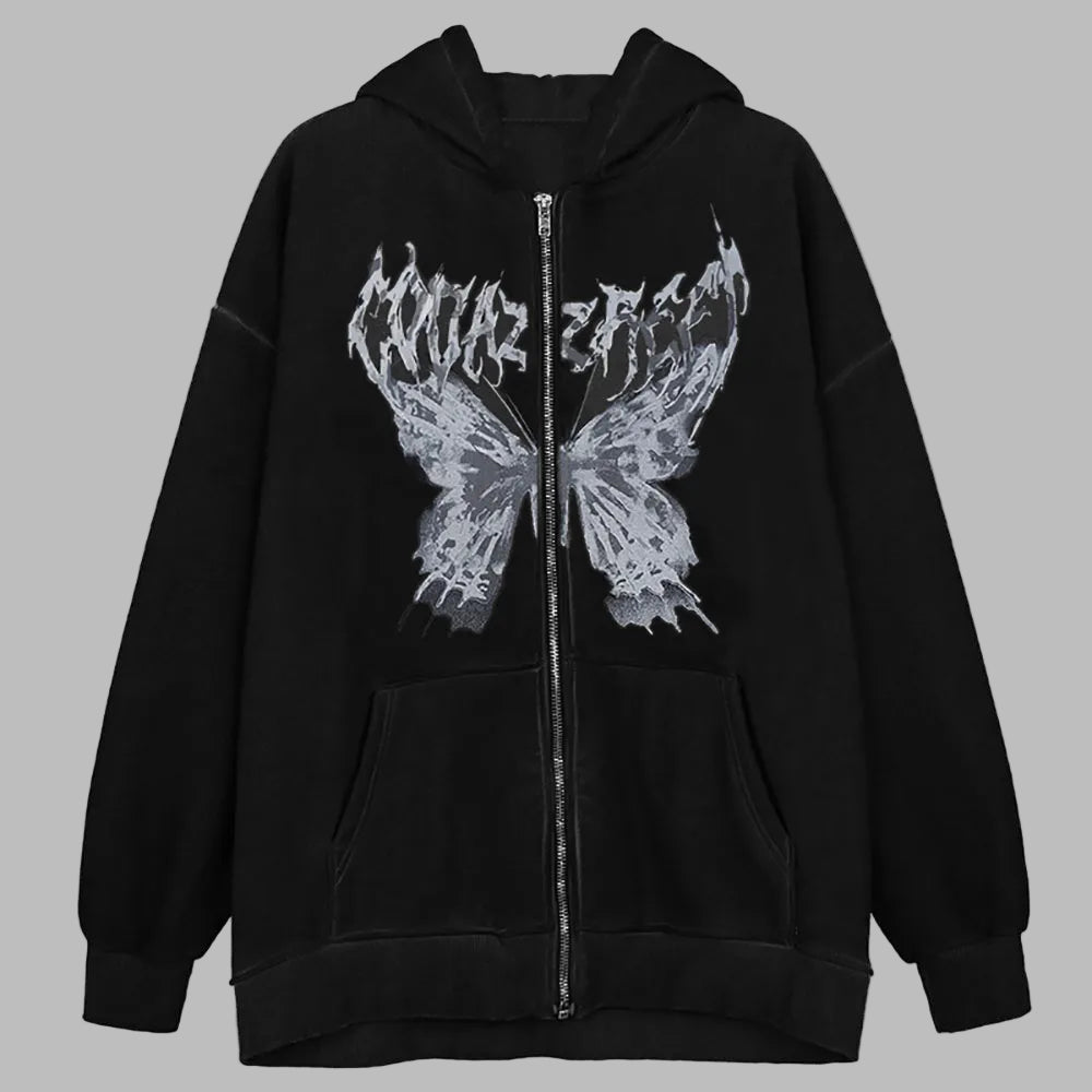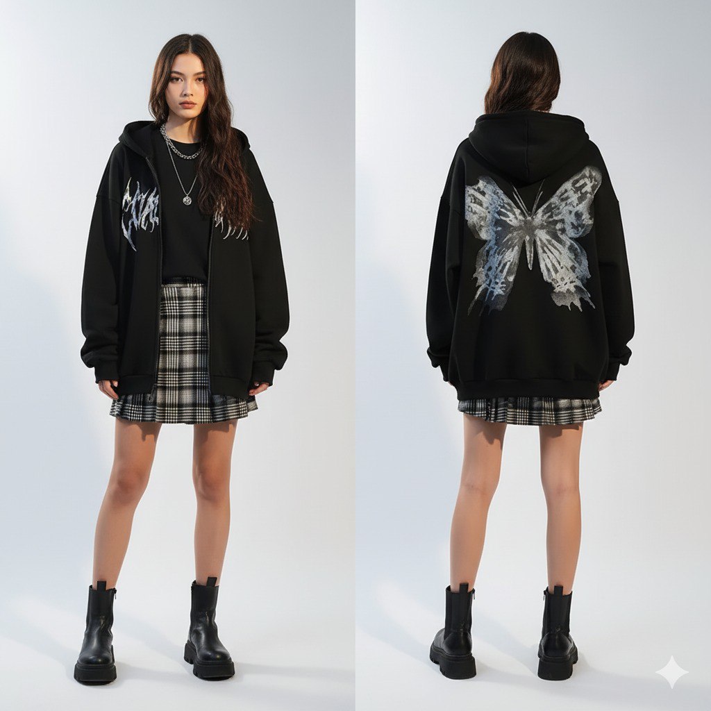 Długa Bluza Punk Rock Motyl na Plecach Czarna Zobacz opcje