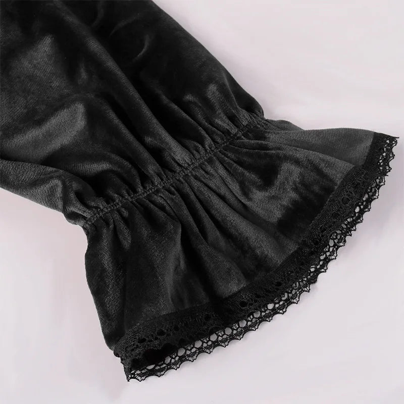 Elegancka Koszula Metal z Żabotem i Sznurowaniem Czarna