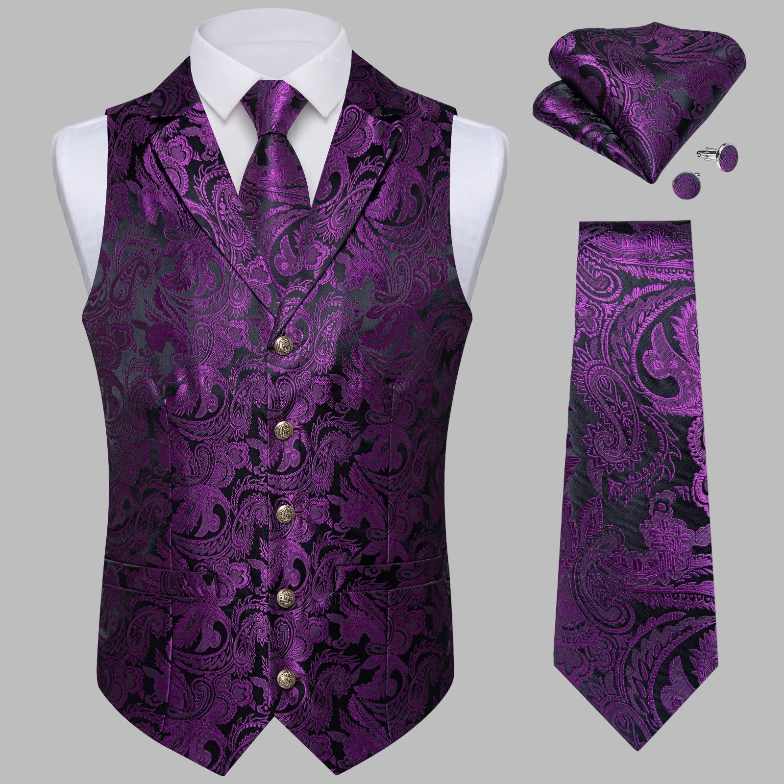 • Zawartość zestawu: kamizelka, krawat, muszka, poszetka, spinki do mankietów
