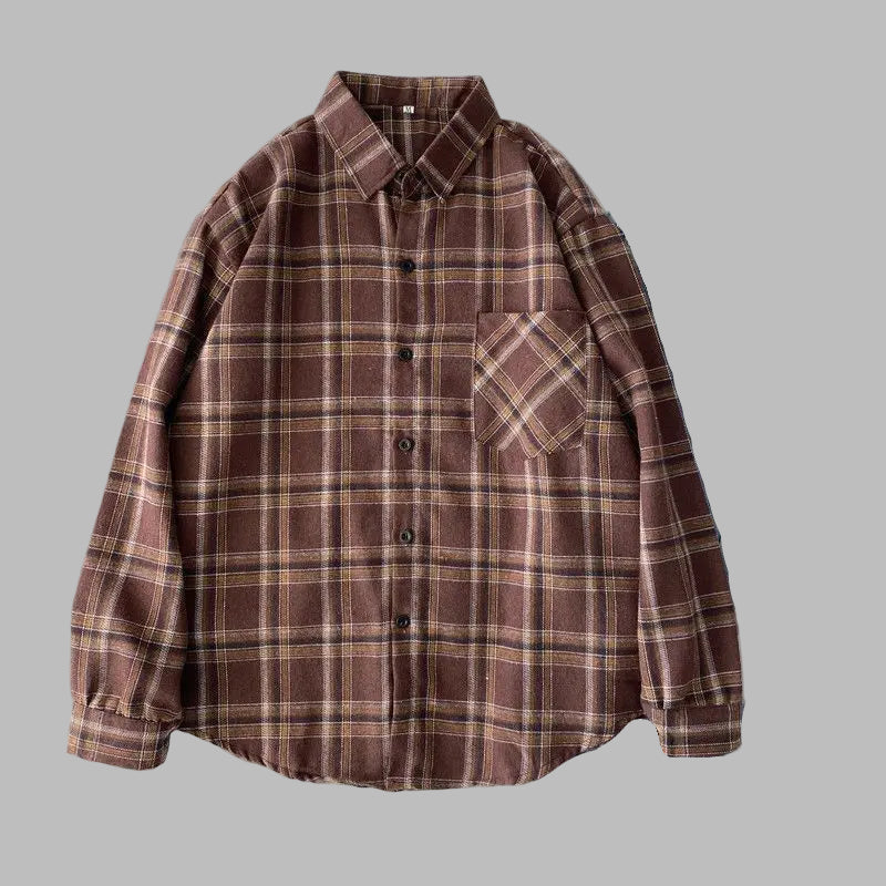 Flanelowa Koszula w Kratę Punk Rock Brązowa z Kieszenią