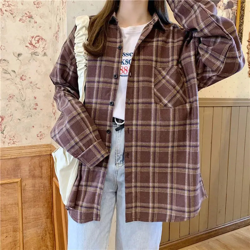 Flanelowa Koszula w Kratę Punk Rock Brązowa z Kieszenią Zobacz opcje