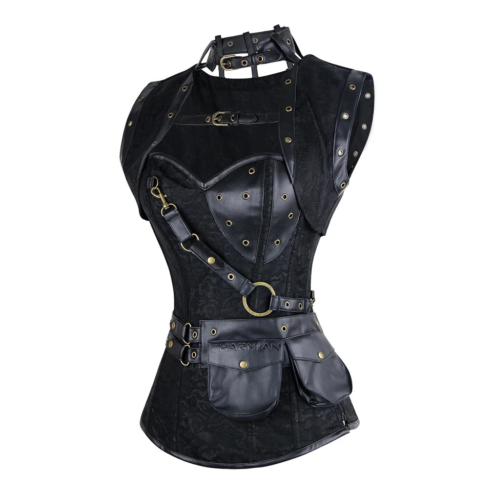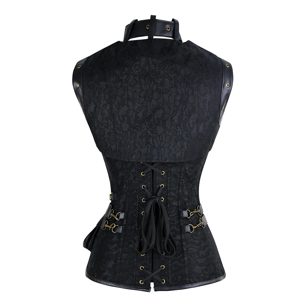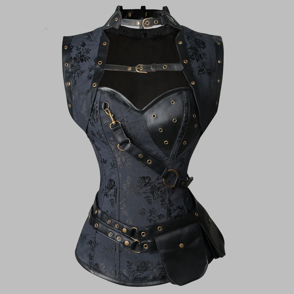 Gorset Gotycki Steampunk z Kwiecistym Wzorem i Skórzanymi Paskami Zobacz opcje