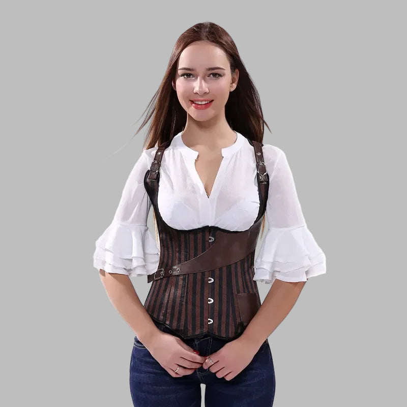 Gorset steampunkowy gotycki brązowo-czarny w paski z ramiączkami